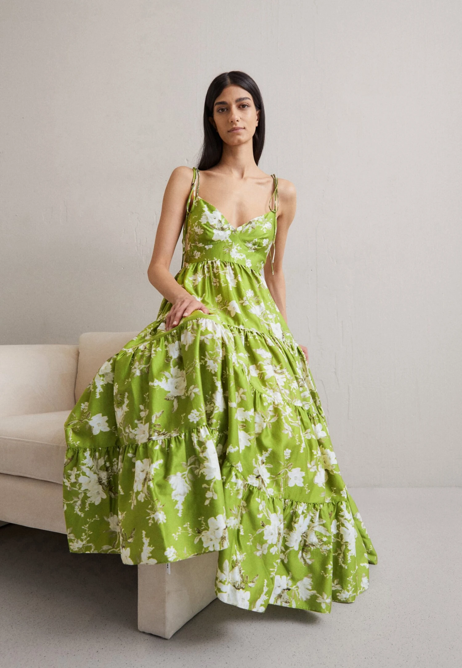 Be the first to review “Erdem Vacation Stapless Long Tiered Dress With Ties – Day Dress – Magnolia Garden Olive” Cancel reply