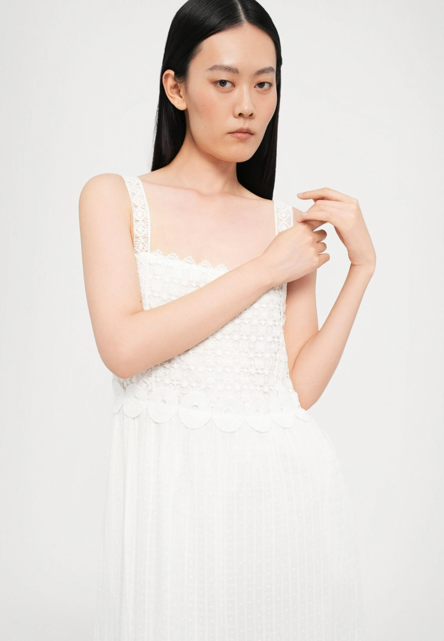 - Neckline: Square neck